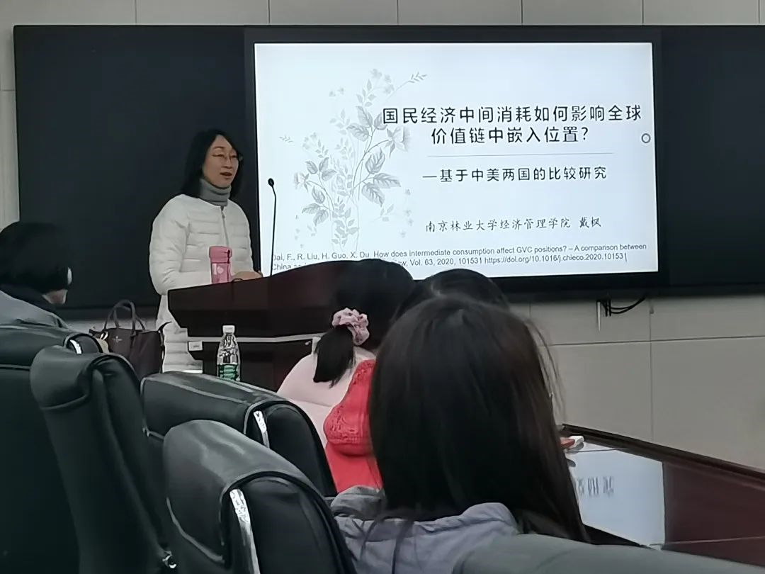 2020年12月17日,商苑讲坛第十二期在博学楼辅楼A100顺利开展,永利集团304am登录有幸邀请到了南京林业大学经济管理教授戴枫老师为大家带来一场主题为“国民经济中间消耗如何影响全球价值链中嵌入位置”的讲座。