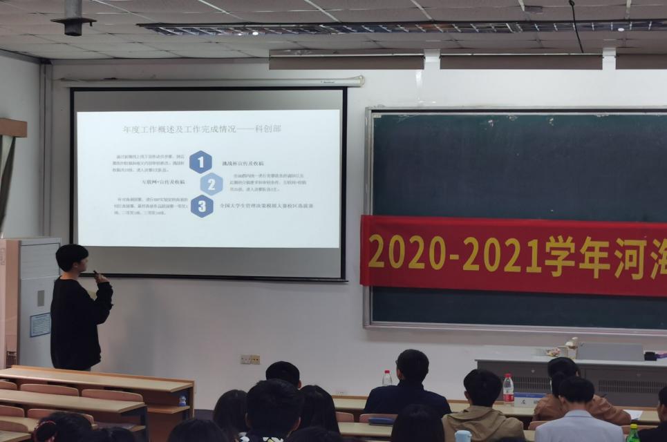 学生科协主席赵逸凡同学从年度工作完成情况及2021年工作计划两方面进行了工作汇报。2020年度,学院科协开展了大学生理财大赛、创新创业训练营、泰山小学科普宣讲等一系列活动。在2021年,科协将围绕着“创新”“人文”“科普”等关键词开展丰富多彩的创新创业活动,提高学生的创新能力。