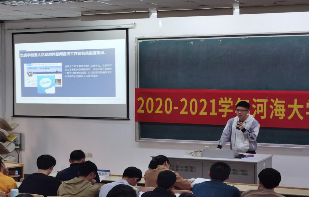 学院学生会主席江越同学首先上台发言,从结构构成、活动开展、总结展望3个方面回顾了学生会在过去一年取得的工作成果,一年来学生会贯彻为同学服务的宗旨,开展了丰富多彩的校园文化活动,2021年学院学生会将以庆祝中国共产党成立100周年为主线,举办更有意义、更有代表性的活动,为学院学生综合素质的提升搭建平台。