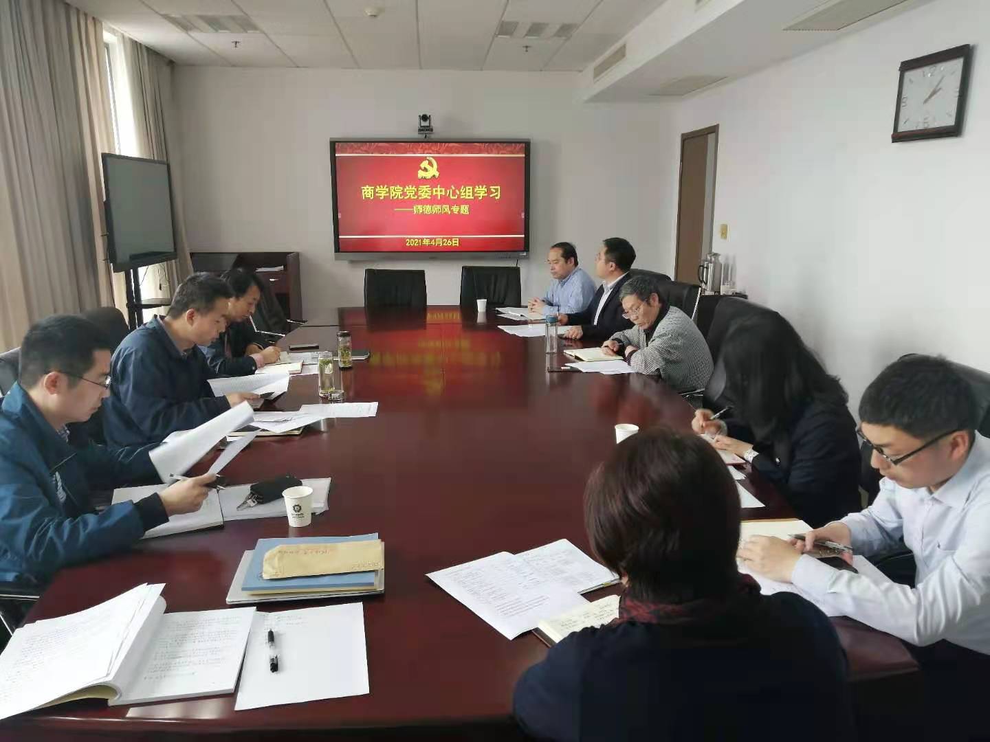 4月26日,永利官网党委组织开展师德师风专题学习,党政领导班子全体成员参加学习,党委书记吴宝海同志主持并领学。重点围绕学习习近平总书记在清华大学考察时重要讲话精神、结合学习《永利集团304am登录加强师德师风建设工作实施办法》《永利集团304am登录教师师德考核办法(试行)》等进行师德师风专题学习。