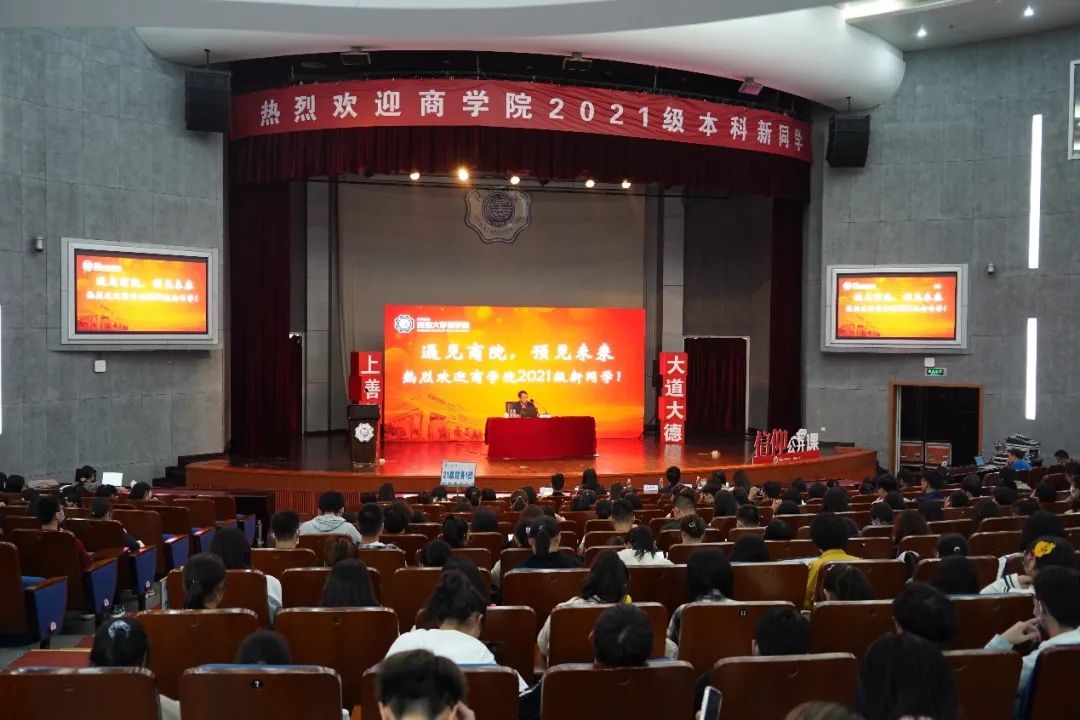 周海炜院长以“遇见商院,预见未来”为题向2021级本科生讲授了第一课。周院长从永利集团304am登录的教育发展历程、战略定位、机构设置、本科专业、本硕博培养模式和国际交流等方面向同学们详细介绍了永利官网的相关情况,帮助新生深入了解永利官网的历史沿革、发展现状和未来的发展方向。周院长提到,永利集团304am登录为同学们提供了良好的发展平台和发展资源,详细介绍了职业发展与就业服务中心、三创空间、国际教育中心、校友与合作发展办公室、案例与课程开发中心等学生服务机构,以及各类实验室、智慧教室等。