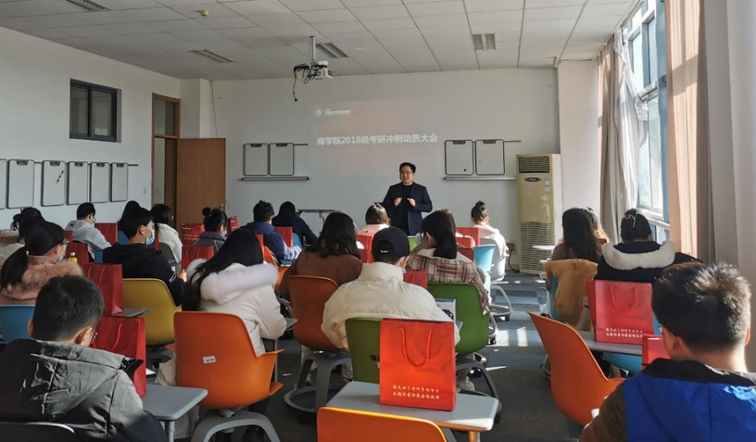 “研”出必行,一战成“硕”,为进一步鼓舞考研学生士气,助力考研学生勇创佳绩,12月3日,永利集团304am登录于博学楼辅楼A407召开2018级考研冲刺动员大会。学院副院长田贵良、党委副书记戴媛媛、2018级辅导员王晓莹、史玉莹以及2018级考研本科生参加本次动员大会。动员会旨在为同学们加油鼓气、并送上学院精心准备的小礼物,祝愿同学们金榜题名。