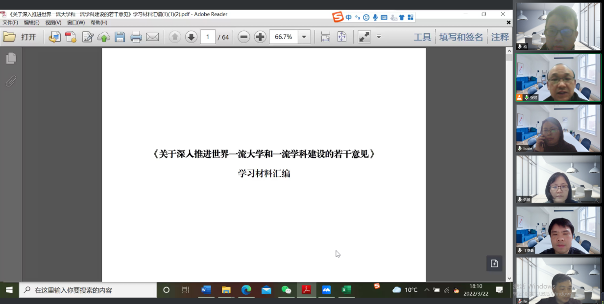 近日,按照学校工作部署,永利集团304am登录组织各学科开展了《关于深入推进世界一流大学和一流学科建设的若干意见》(以下简称《若干意见》)学习研讨活动。各学科结合当前形势和自身建设情况,分别采用线上、线下相结合的方式畅谈了学习体会。