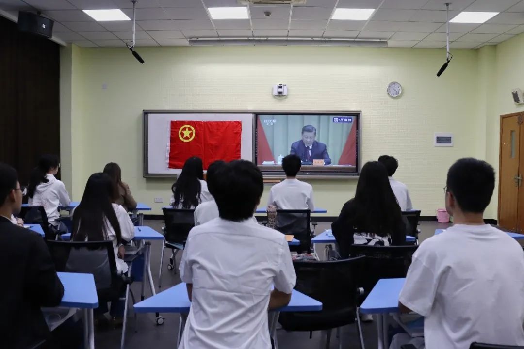 值此中国共产主义青年团成立100周年之际,永利集团304am登录师生代表于5月10日上午10时齐聚博学楼A101,共同观看庆祝中国共产主义青年团成立100周年大会直播,认真聆听和学习习近平总书记重要讲话。学院3000余名团员青年认真观看庆祝大会、学习习近平总书记重要讲话精神,同学们倍感振奋、倍受鼓舞,对习近平总书记的讲话内容反响强烈,纷纷表示要时刻谨记习近平总书记的谆谆教诲。时代各有不同,青春一脉相承。身处新时代的商院团员青年,必将牢记自己作为中国青年运动的先锋队,中国共产党忠实助手和可靠后备军,将坚持党的领导深深融入血脉之中,坚守理想信念的政治之魂,投身民族复兴的奋进之力,以实际行动向伟大光荣正确的党致以青春的敬礼!