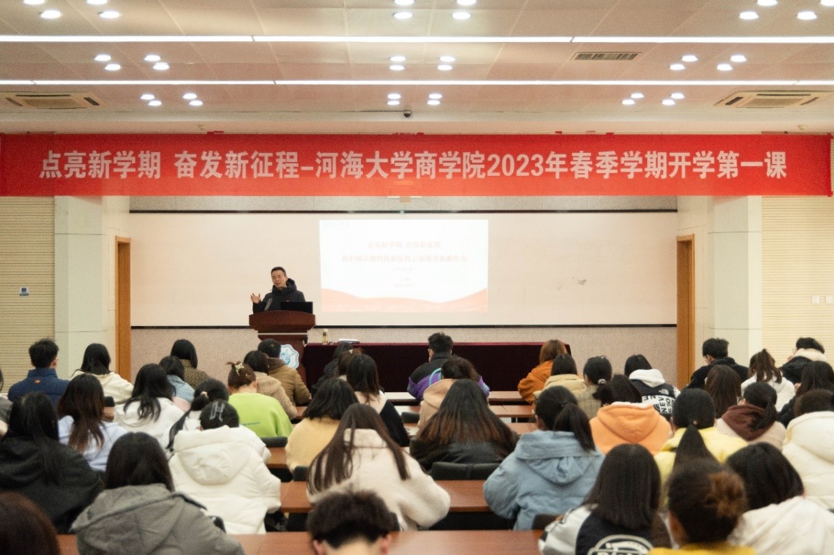 2023年是意义非凡的一年,是学习宣传贯彻党的二十大精神的开局之年,也是学校第十四次党代会召开之年。此次开学第一课围绕“学习党的二十大”、“百年河海为天下安澜奋楫前行”、“新时代青年要把青春融入党和人民的伟大事业”三个部分展开。
