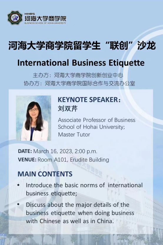 讲座通知:留学生联创沙龙—International Business Etiquette