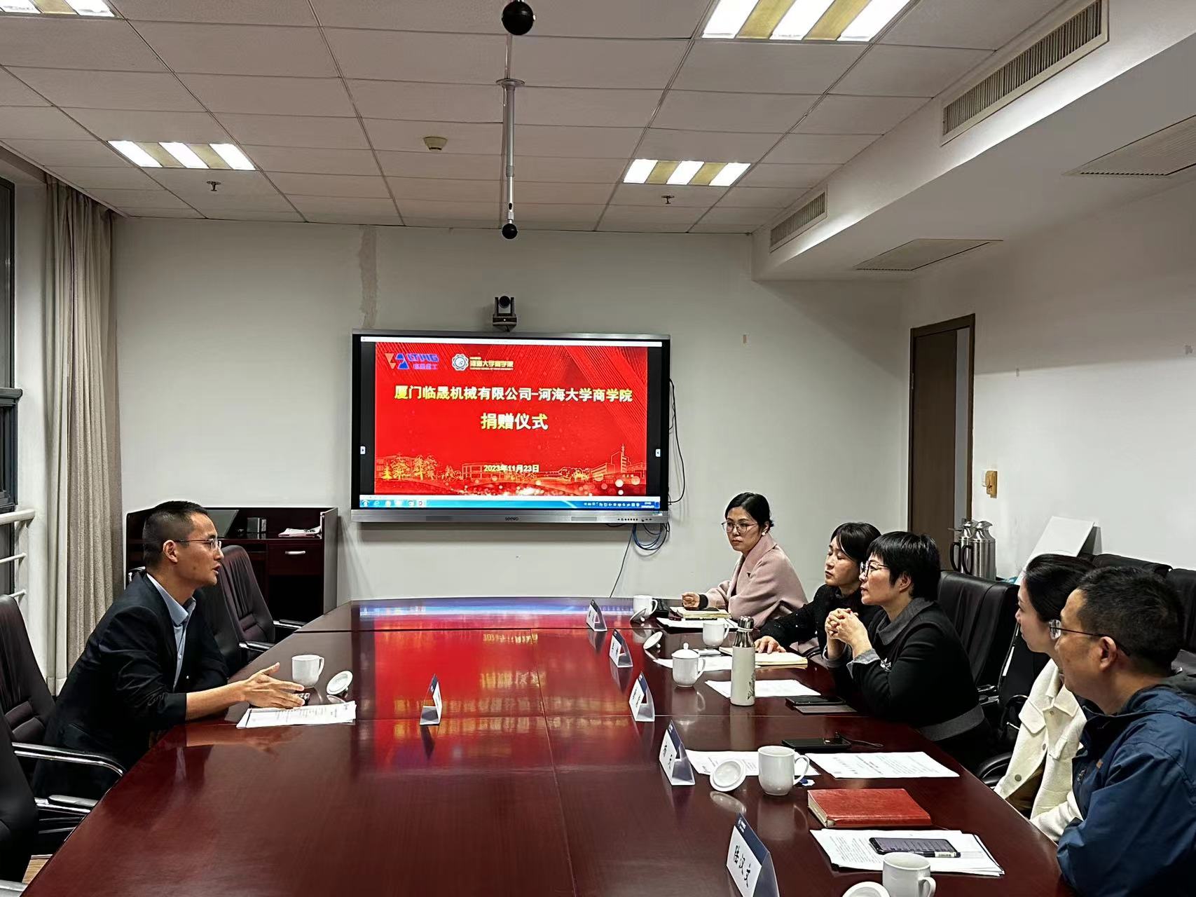 捐赠仪式上,唐震副院长对厦门临晟重工有限公司郭鹏的到来表示欢迎,向郭鹏校友捐资助力学院教育事业发展的善举表示衷心的感谢。她介绍了学院近年来建设发展情况,并指出学院的发展离不开社会各界人士特别是校友们的关心、支持和帮助,此次捐赠不仅生动诠释了郭鹏校友心系母校发展,感恩母校的深厚情谊,也彰显了企业高度的社会责任感。期待未来与企业在更多的领域开展合作,携手并进,互利共赢。