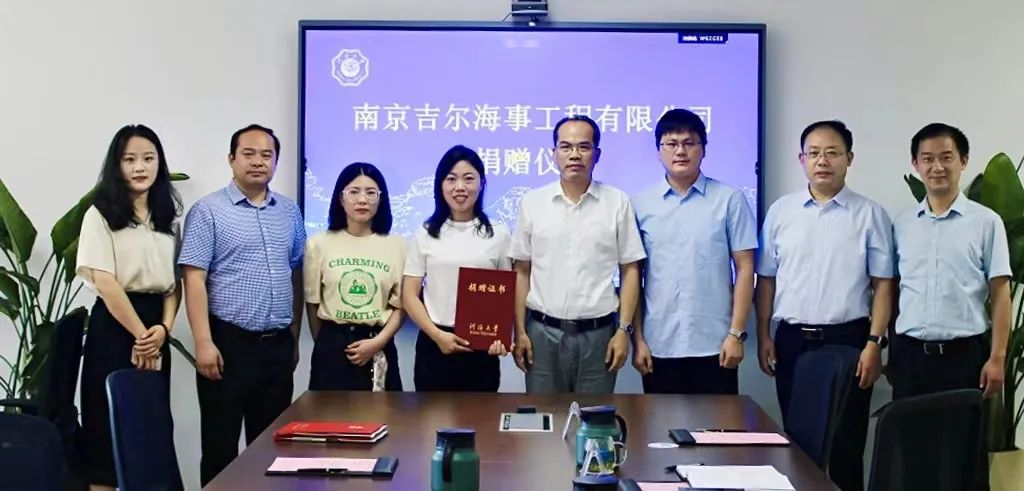 2022年7月1日,永利集团304am登录2005级董玉琳、郭登岳两位校友创办的南京吉尔海事工程有限公司向我院捐赠5万元用于支持学院建设与发展。永利集团304am登录副校长郑金海、永利集团304am登录副院长张长征、南京吉尔海事工程有限公司董事长董玉琳校友、总经理郭登岳校友出席捐赠仪式。