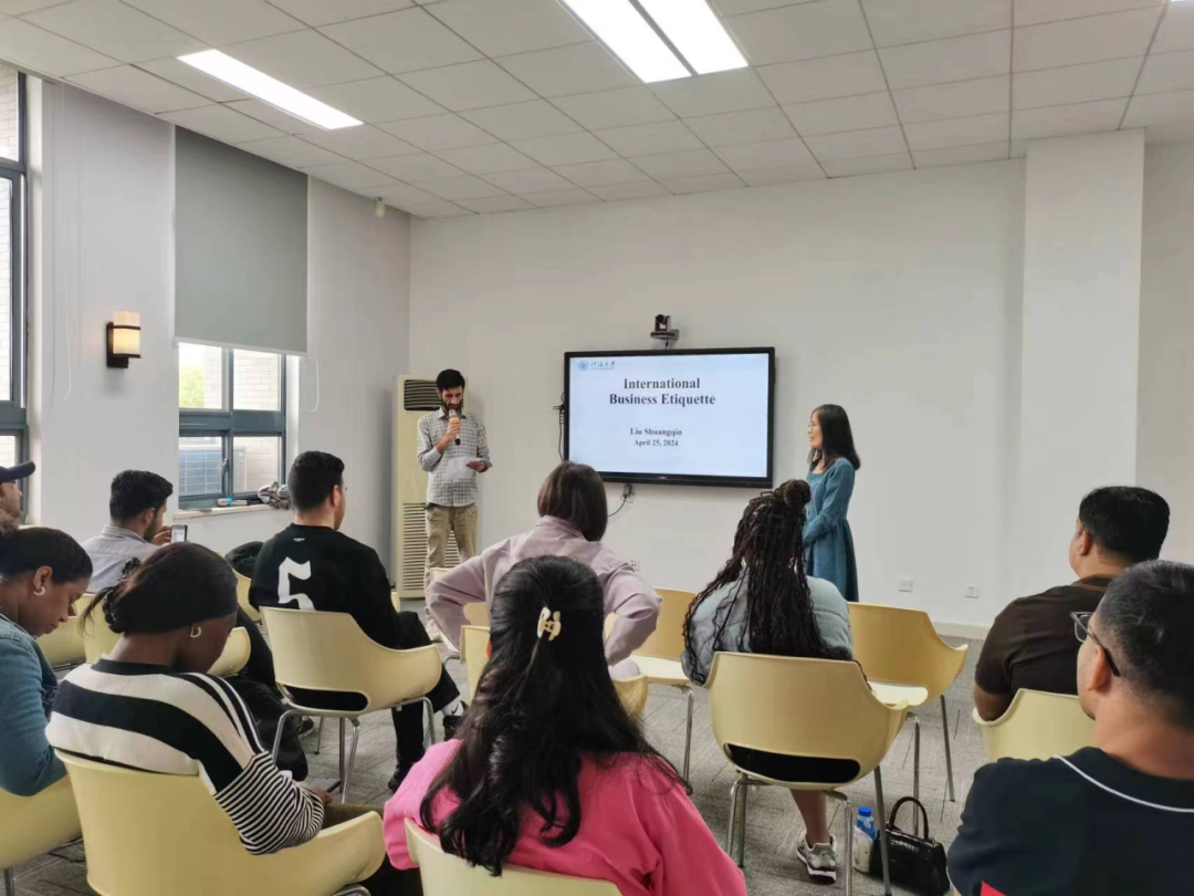 接着,刘老师深入解读了在与不同国家开展商业合作,特别是与中国进行经贸往来时需要注意的细节。她认为熟练掌握中文以及了解中国的商业文化是与中国人进行有效交流的关键。此外,同学们还需熟悉中国的会面礼仪,学会恰当地表达同意、拒绝等意愿。通过分享,同学们更加清楚认识到商业交流蕴含的奥秘,明白了语言的掌握、表达的方式、文化的了解都在跨国合作中起着至关重要的作用。