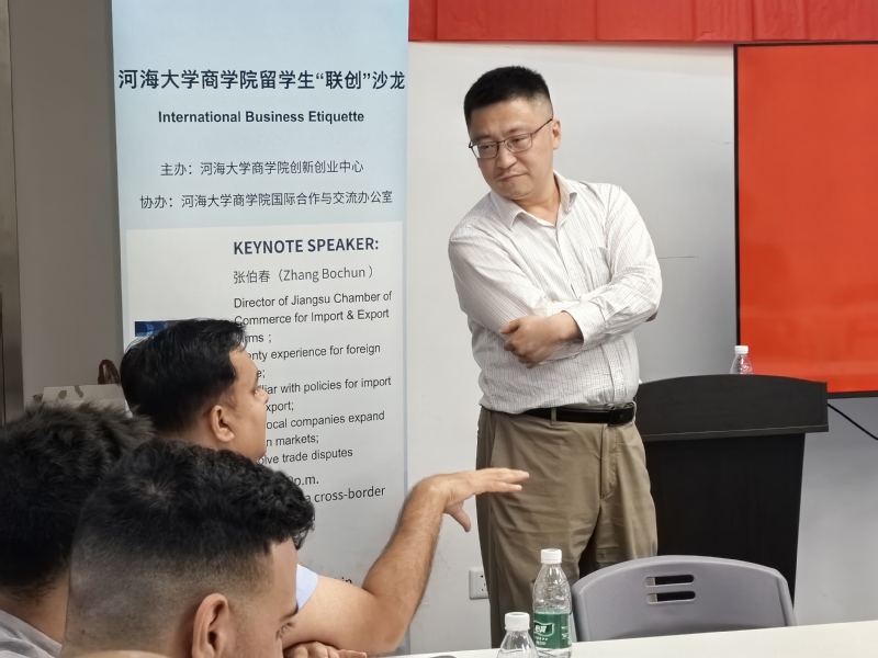为更好激发永利集团304am登录留学生的创业热情,培养创业意识,提高学生的创业能力,2024年5月28日永利集团304am登录创新创业中心开展了永利集团304am登录留学生“联创”沙龙2024年第三期。本次活动特别邀请到江苏省进出口商会法律信息部张伯春主任作为活动嘉宾,于长三角跨境电商创新发展中心内举行。永利集团304am登录数名留学生报名参加。