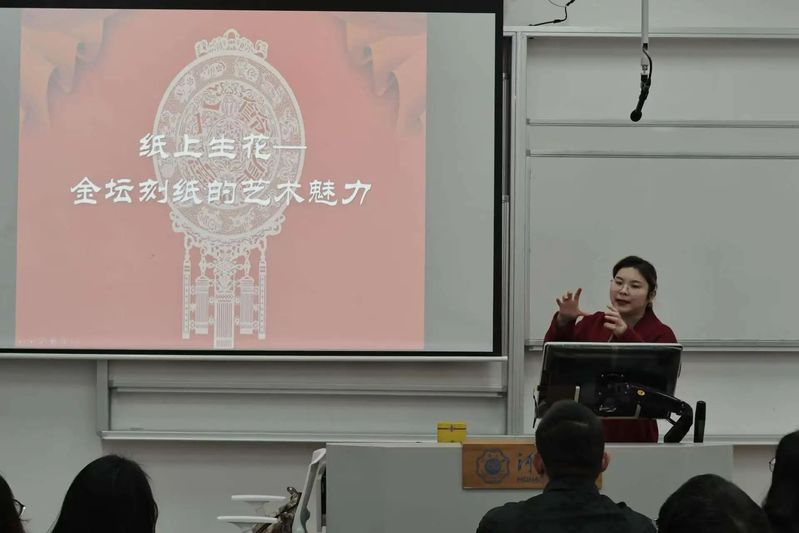 活动伊始,何雅雯老师以生动的语言和丰富的图片资料,详细讲述了金坛刻纸的历史渊源与发展脉络,展示了不同时期金坛刻纸的经典作品。从古老的民俗风情到现代的艺术创新,每一幅作品都承载着深厚的文化内涵和艺术价值。何老师还详细讲解了基本图样的绘制方法和刻纸技巧,为后续实践操作提供一定参考。