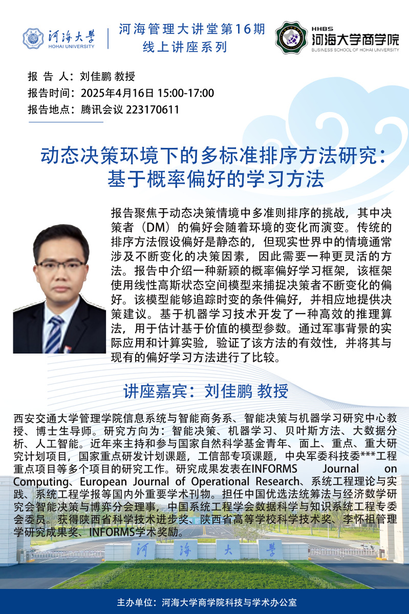 动态决策环境下的多标准排序方法研究——基于概率偏好的学习方法