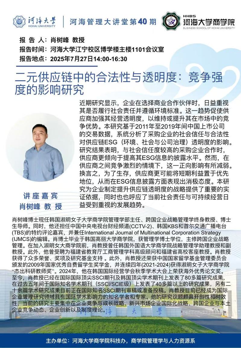 二元供应链中的合法性与透明度:竞争强度的影响研究
