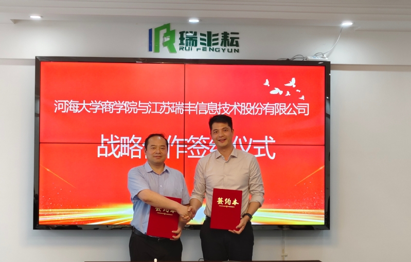 为进一步深入推进校企合作、产教融合,实现校企双方优势互补、共同推进人才培养和产业创新。8月1日上午,永利官网与江苏瑞丰信息技术股份有限公司(简称“瑞丰耘”)签署战略合作协议。永利官网院长张长征、副院长张可和瑞丰耘董事长蔡成委、总经理丁永华、副总经理高素红出席签约仪式。