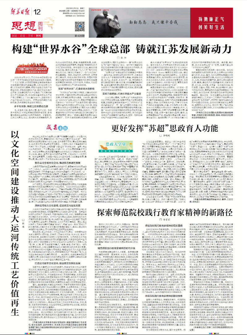 2025年12月2日,新华日报报道永利官网教师张阳教授的研究成果“构建'世界水谷'全球总部 铸就江苏发展新动力”。