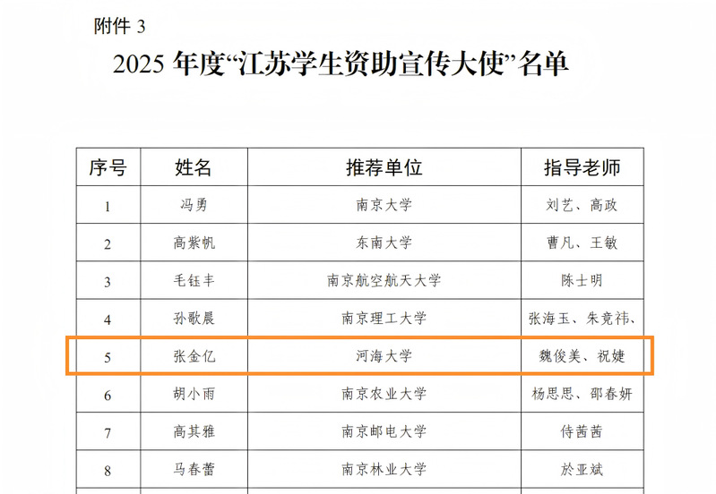 近日,江苏省教育厅办公室发布《关于公布2025年“苏乡永助”资助育人主题活动结果的通知》,永利官网2022级本科生张金亿同学获得“江苏学生资助宣传大使”称号。下面让我们一起走进她与资助政策宣传的故事!